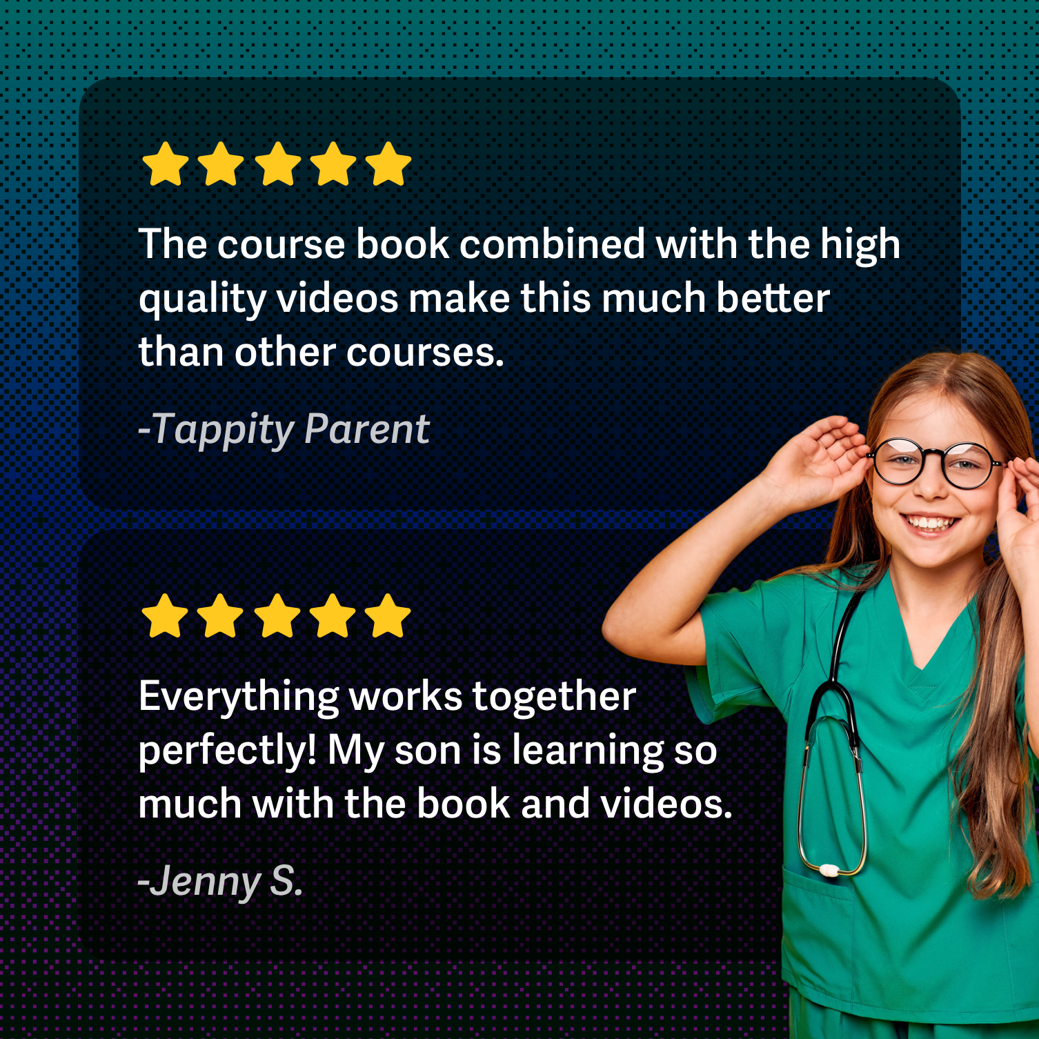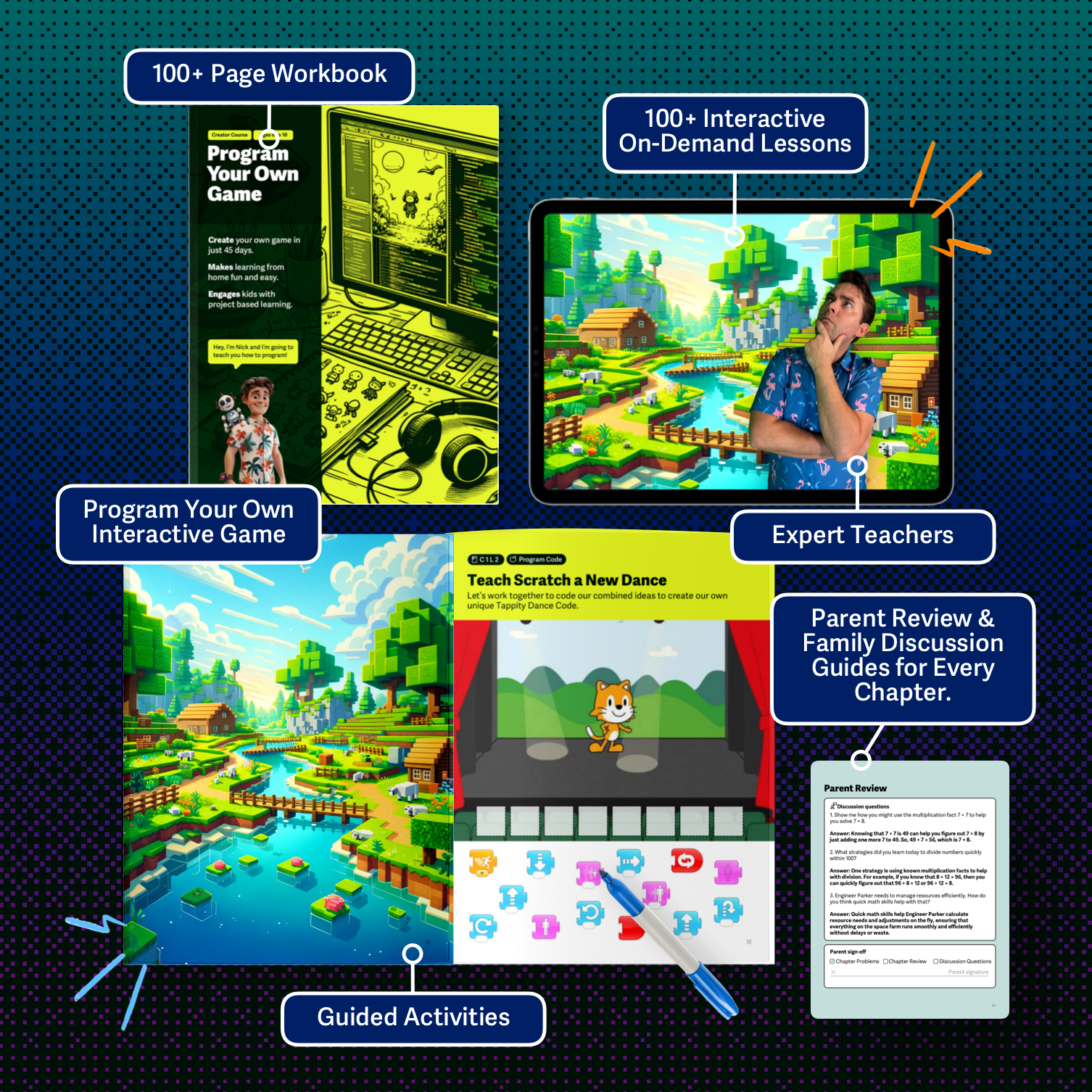 3. Self-Paced Learning: Your child completes the course with our video library and workbook, on their own schedule.